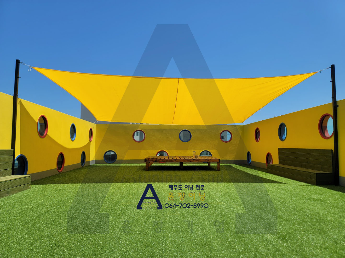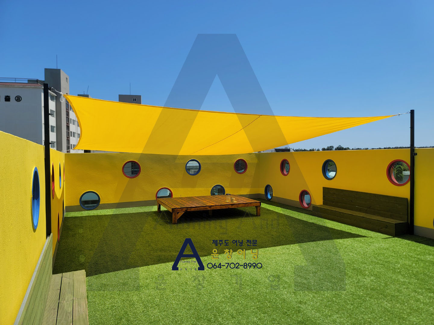 도련동 어린이집 옥상놀이터에 노란색 썬세이드를 설치하였습니다^^